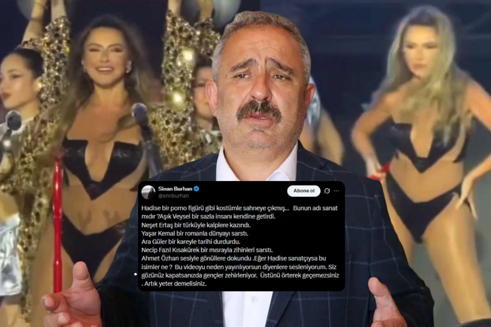 Sinan Burhan, paylaşımında Hadise’nin sahne tarzını sert ifadelerle eleştirerek, “Hadise p.rno figürü gibi kostümle sahneye çıkmış… Bunun adı sanat mıdır?” dedi.