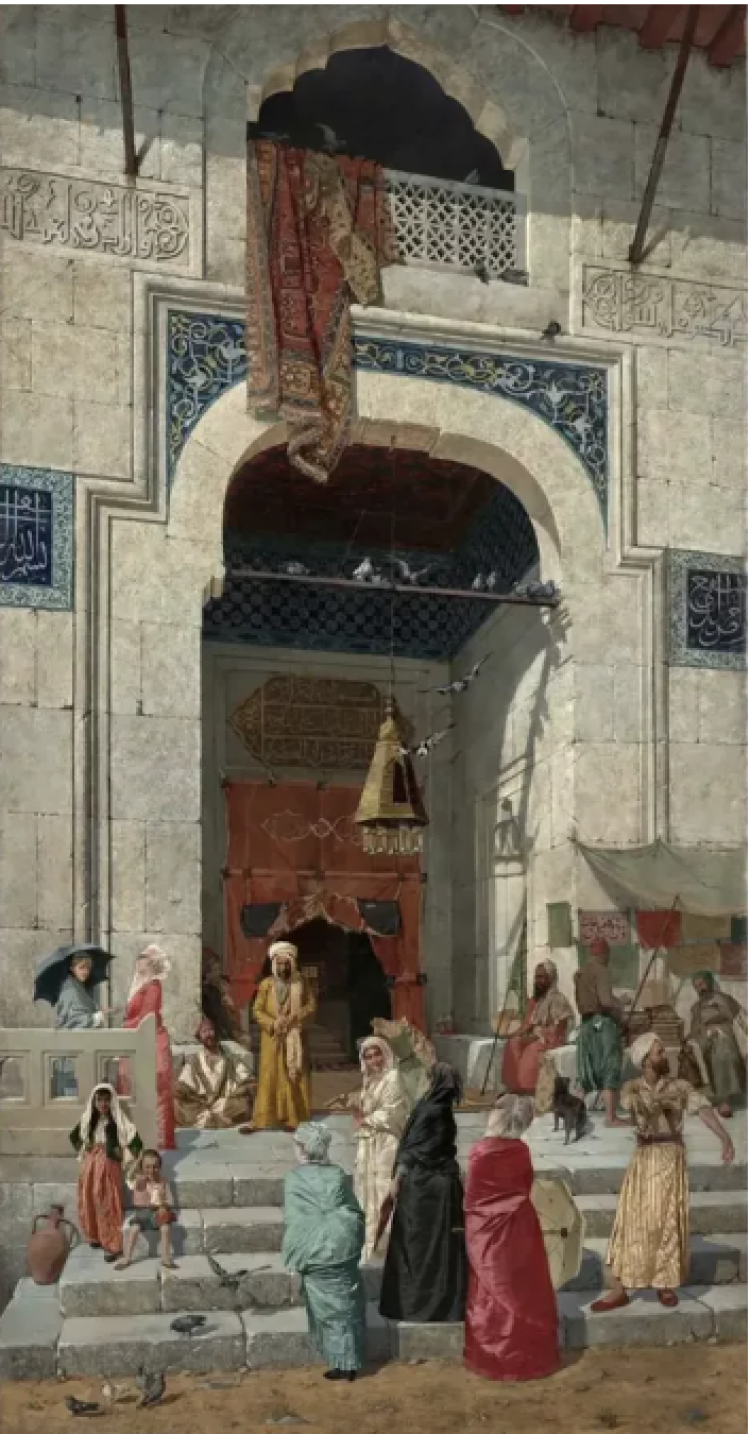 BBC News Türkçe'nin haberine göre, dünyaca ünlü Türk ressam ve arkeolog Osman Hamdi Bey'in önemli eseri "Cami Kapısında" 131 yılın ardından ilk kez müzayedeye çıkıyor.